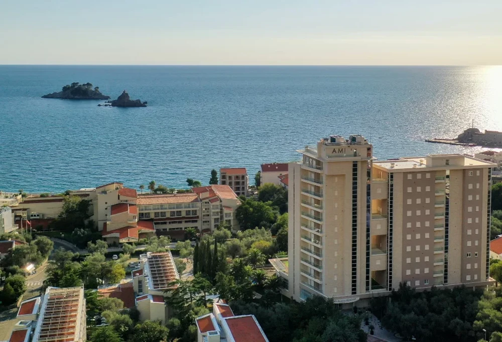 Hotel Ami është një hotel modern dhe elegant, i vendosur pranë bregdetit në Budva, vetëm pak minuta larg qendrës historike të qytetit. Ofron ambiente luksoze, dhoma të rehatshme me pamje nga deti, pishinë të jashtme, spa dhe restorant me kuzhinë ndërkombëtare. Është zgjedhje ideale si për pushime relaksuese, ashtu edhe për çifte që kërkojnë komoditet dhe shërbim cilësor pranë plazhit.