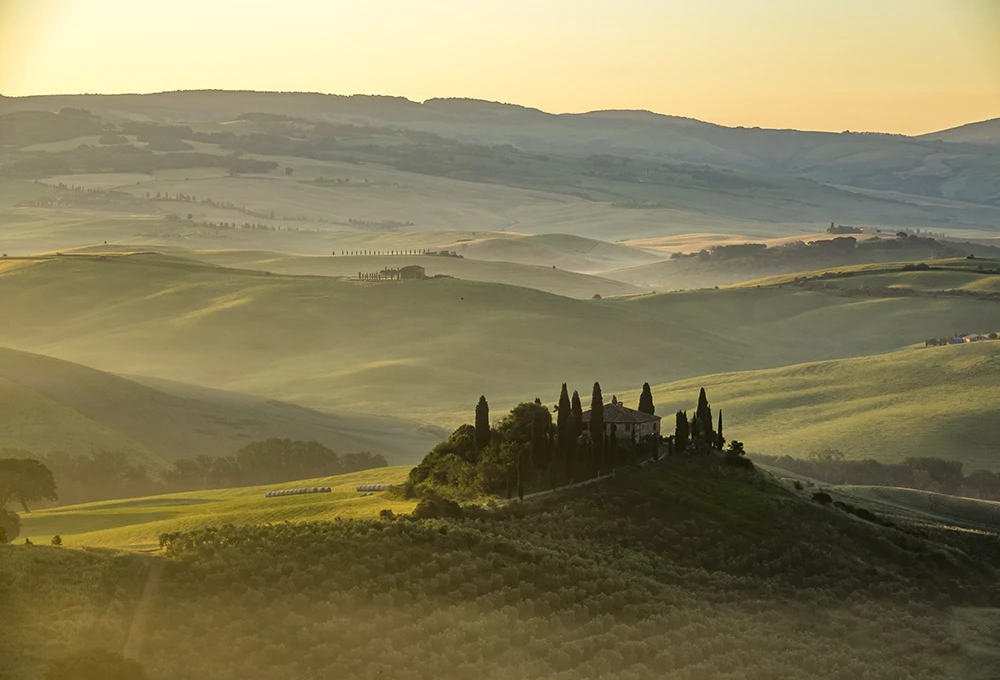 -Pamje ikonike mbi kodrat toskane